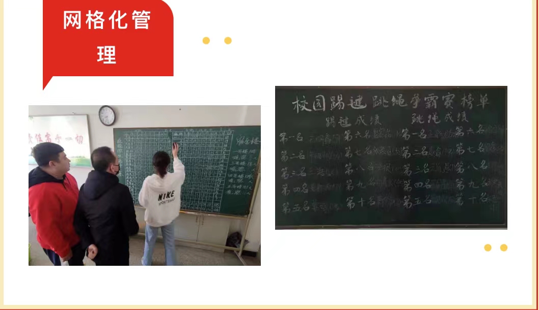 四是实施“网格化管理”,精准施策。构建师生学习、餐饮、住宿、活动等空间网格化及时间分区化的管理模式,实行餐饮、活动错时错峰,校门口设有缓冲隔离区,各教学楼、宿舍楼分层专人负责,做到网格边界清晰、责任主体明晰、任务分工明确。